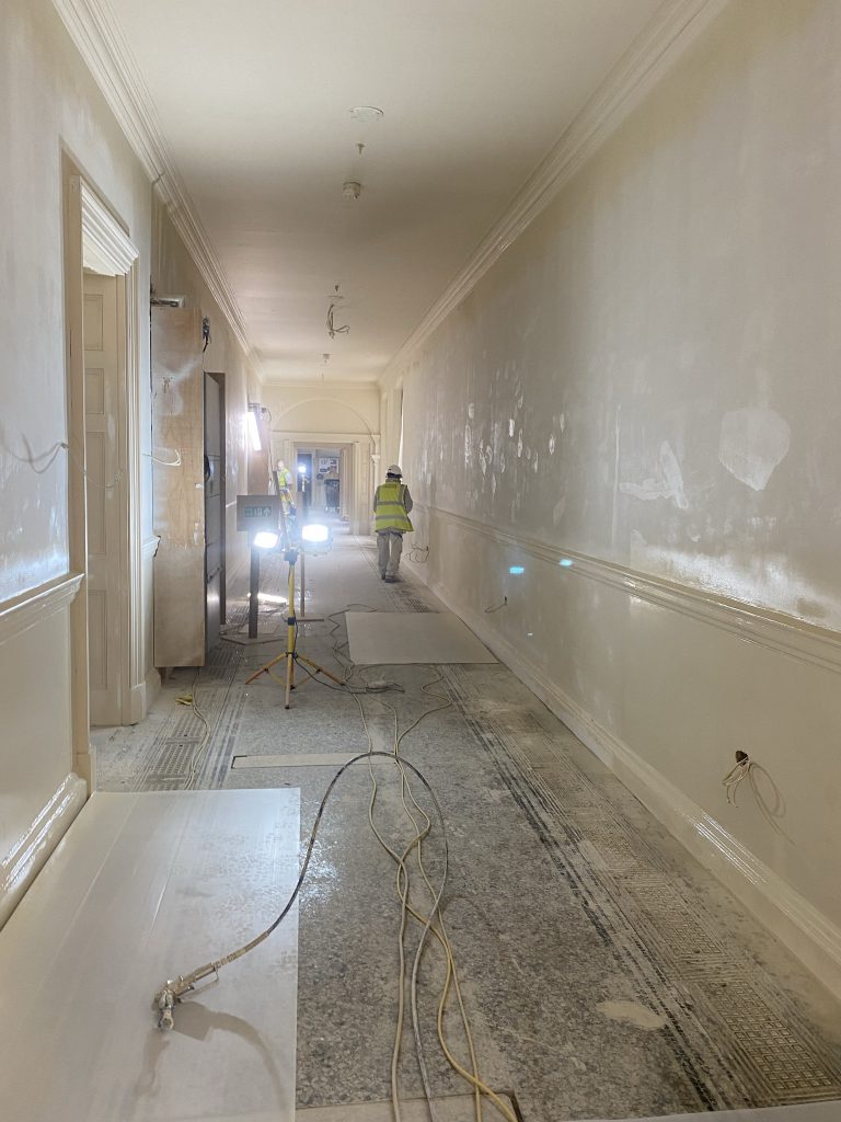 The external façade restoration / alterations continue. Scaffold erection will continue around building, now moving in Whitehall and Whitehall Place.